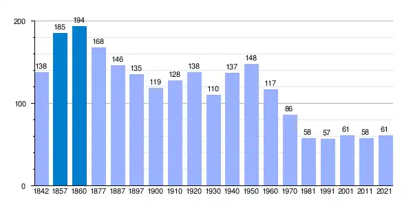 Gráfica de evolución demográfica de Daroca de Rioja[3] entre 1842 y 2021