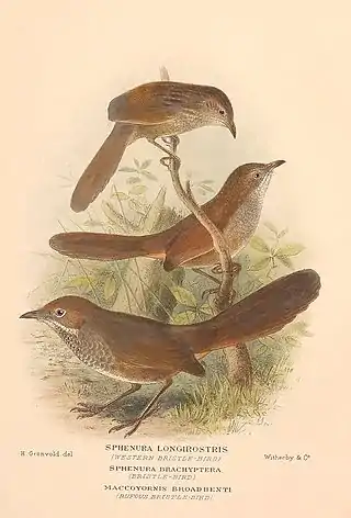 - Dasyornis brachypterus (Latham, 1801) - picocerdas oriental;