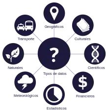 En un uso alternativo, los archivos binarios (que no son legibles por humanos) a veces se denominan "datos" a diferencia del "texto" legible por humanos.[3] La cantidad total de datos digitales en 2007 se estimó en 281 mil millones de gigabytes (= 281 exabytes).[4][5] Los datos digitales vienen en estos tres estados: datos en reposo, datos en tránsito y datos en uso.