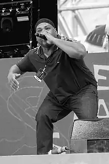 ![]() Posdnous y Maseo durante un recital en Berlín en 2019. | ||