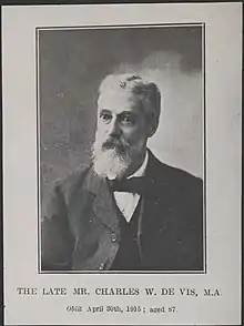 Wikispecies tiene un artículo sobre Charles Walter De Vis.- Biography - Bright Sparcs