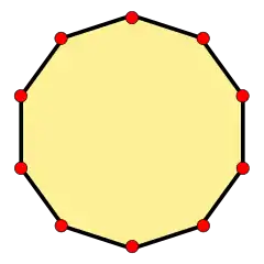 El símbolo de Schläfli del decágono regular es {10}.[3]