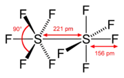 El decafluoruro de diazufre o decafluoruro de disulfuro (S2F10) es un compuesto químico inorgánico descubierto en 1934 por Denbigh y Whytlaw-Gray.[2] Cada átomo de azufre de la molécula S2F10 es octaédrico y está rodeado por cinco átomos de flúor.[3] También se denominó pentafluoruro de azufre y fluoruro de azufre(V). Contiene azufre en su estado de oxidación +5.[4]