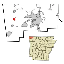 ![]() Localización en el condado de Benton y en el estado de Arkansas | ||