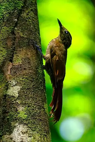 ![]() Trepatroncos colilargo pequeño (Deconychura typica) en Puntarenas, Costa Rica. | ||