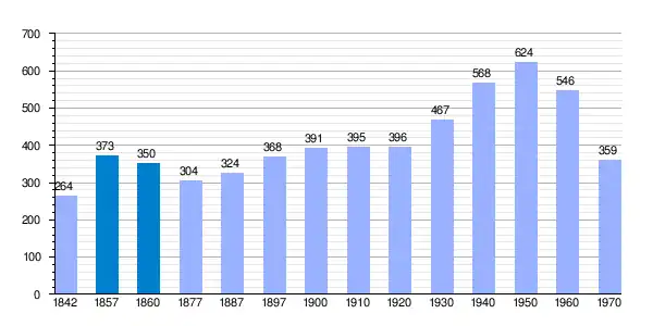 | Gráfica de evolución demográfica de Dehesa[3] entre 1842 y 1970 |