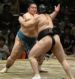 - «Sumo: Former ozeki Dejima to hang up mawashi». Breibart.com. 22 de julio de 2009. Archivado desde el original el 13 de junio de 2011. Consultado el 3-82009.