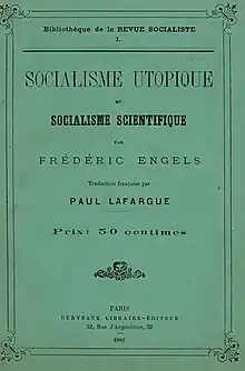 El folleto resultante se publicó finalmente en París en 1880 como Socialisme utopique et Socialisme scientifique (Socialismo utópico y socialismo científico).[4] Esta traducción al francés proporcionó la fuente de múltiples versiones en otros idiomas, incluidas las ediciones en polaco y español.[4]