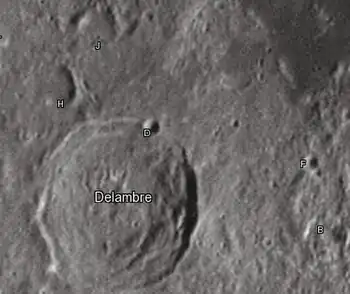 Por convención estos elementos son identificados en los mapas lunares poniendo la letra en el lado del punto medio del cráter que está más cerca de Delambre.