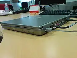 - Opcionalmente se podía retirar la unidad óptica (para aligerar el equipo) poniendo en su lugar una tapa, o sustituirlo por un segundo disco duro de 40 GB o una segunda batería de 48 vatios.