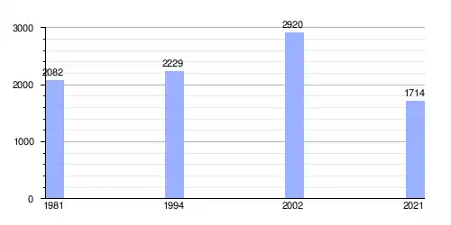 Hasta 2021 la población era de 1714 habitantes,[2] con una densidad de población de 114,4 habitantes por kilómetro cuadrado.[2]