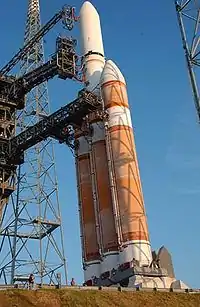 ![]() El Delta IV en la plataforma de lanzamiento.