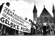 El «éxito electoral» superó al partido y Janmaat comenzó a hacer declaraciones «controvertidas» en los medios. Sugirió que varios ministros del gabinete, incluido el de Justicia, Ernst Hirsch-Ballin —de ascendencia judía—, y el de Agricultura, Dzsingisz Gabor —de ascendencia húngara—, deberían ser destituidos de sus puestos de liderazgo.[12] Esto marcó el inicio de los enjuiciamientos de varios de sus miembros por cargos de racismo,[13] así como la decisión de otros grupos en el Parlamento y el gobierno de colocar un cordón sanitario alrededor del partido.[4]