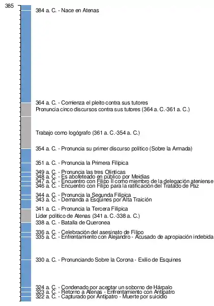 | Cronograma de la vida de Demóstenes (384 a. C.–322 a. C.) |