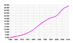 ![]() Evolución del número de habitantes de Arabia Saudita entre 1960 y 2010 según la FAO. | ||