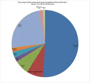 Según el CIA World Factbook,[7] la mayor parte de la población, en un 51% (60% según la Biblioteca del Congreso), es persa. Luego hay pueblos pertenecientes a diferentes grupos étnicos: