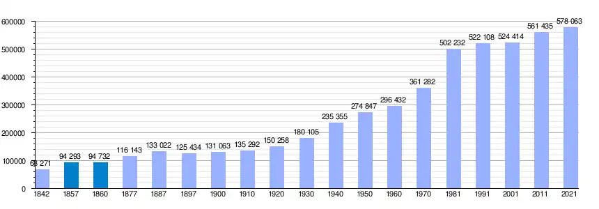 | Gráfica de evolución demográfica de Málaga[1] entre 1842 y 2021 |