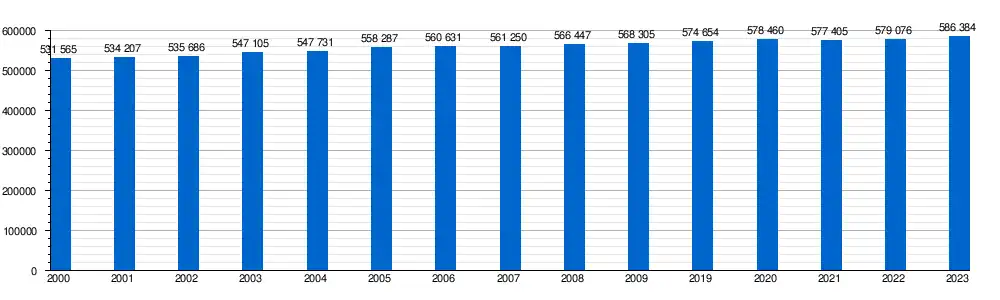 | Gráfica de evolución demográfica de Málaga[3] entre 2000 y 2023 |