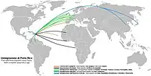 La población de Puerto Rico es producto de la mezcla entre los indígenas taínos, los colonizadores españoles y los descendientes de africanos sometidos al comercio transatlántico de esclavos.