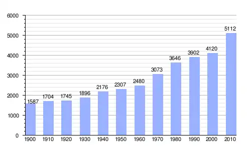 | Población | 1 246 485 | 1 459 465 | 1 587 533 | 1 704 127 | 1 745 514 | 1 896 738 | 2 176 670 | 2 307 068 | |||||||||||