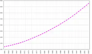 De los rangos de edad, el que contiene a un mayor número de personas comprende las edades entre los 15 y los 64 años (53% en 2000), seguido por los menores de 14 (44%) y los mayores de 65 (3%). En los dos primeros grupos se contabilizan más varones que mujeres, siendo al contrario por encima de los 65 años. El crecimiento poblacional estimado para 2006 era del 2,61%.