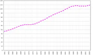- Densidad de población (2001): 168 hab/km²