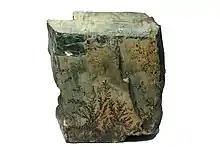 A veces también se forman dendritas sobre rocas cuando agua con alto contenido en hierro y manganeso fluye por fisuras naturales entre capas de caliza. Son producto de la evaporación de estas aguas que, al penetrar en los poros de las rocas, depositan las sales disueltas formando incrustaciones y agregados típicos en forma de un árbol. Se forman en un ambiente sedimentario.