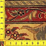 La densidad de nudos es una medida tradicional de la calidad de la alfombras hechas a mano. La magnitud hace referencia al número de nudos, o cuenta de nudos, por unidad de superficie, típicamente por pulgada cuadrada (kpsi por sus siglas en inglés) o por centímetro cuadrado (kpsc), aunque también puede ser por decímetro o metro (kpsd o kpsm). El número de nudos por unidad de área es directamente proporcional a la calidad de la alfombra.[1][2][3][4] La densidad puede variar de 25 a más de 1000 kpsi, o de 4 a más de 155 kpsc, donde una densidad de ≤80 kpsi es de mala calidad, 120 a 330 kpsi de media a buena y ≥330 kpsi es de muy buena calidad.[2] La relación de nudos, también es utilizada para comparar características.[5][6] Densidad de nudos = trama×urdimbre mientras que la relación de nudos = trama/urdimbre. En comparación: 100,000/metro cuadrado = 1,000/decímetro cuadrado = 65/pulgada cuadrada = 179/gereh.