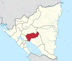 Este departamento ocupa la esquina central montañosa de Nicaragua, limitando al norte con el departamento de Matagalpa, al sur con el departamento de Chontales y el Lago Cocibolca o Gran Lago de Nicaragua, al este con la Región Autónoma de la Costa Caribe Sur y el departamento de Boaco y al oeste con los departamentos de Managua y Granada.