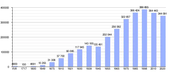 | Gráfica de evolución de Bydgoszcz entre XVII y 2020 |