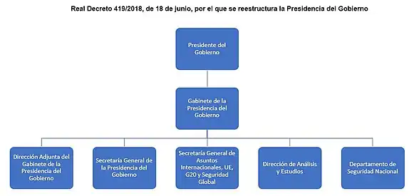Dependiendo directamente del jefe del Gabinete de la Presidencia del Gobierno su estructura sería la siguiente: