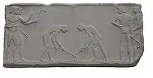 Los griegos conocían los juegos de pelota, cuyo origen Heródoto atribuye a los lidios.[38] En la Odisea, Nausícaa y sus seguidores juegan a la pelota después de lavar la ropa.[39] Estos juegos parecen ser bastante populares: un hombre llamado Timócrates [40] y el médico Galeno [41] les dedican un tratado, y Teofrasto cita el sphairistêrion (en griego antiguo: σφαιριστήριον), una habitación reservada para estos juegos, como una característica relativamente común de una casa privada rica.[42][43] En el siglo I d. C., Julio Pólux enumera un gran número de ellas, pero en su mayoría se limita a dar el nombre sin explicar las reglas; Ateneo proporciona algunas descripciones. Al parecer, la apórraxis (en griego antiguo: ἀπόῤῥαξις) consistía en regatear durante el mayor tiempo posible.[44] La ouranía (en griego antiguo: οὐρανία) se jugaba con la mano contra la pared, más bien como la pelota vasca a mano desnuda o como el fives británico.[45][46] El ἐπίσκυρος tenía la peculiaridad de jugarse en equipo; la descripción que deja Pólux es incompleta, pero parece ser un ancestro del rugby.[47] Un bajorrelieve ático del siglo VI a. C. también muestra lo que se parece mucho al hockey moderno.[41] Sin embargo, se trataba de juegos deportivos, no de verdaderos deportes, y no alcanzaban la popularidad del fútbol en los tiempos modernos; no se encontraban en el programa de las competiciones deportivas.[41] La única ciudad en la que llegaron a ser importantes fue Esparta.