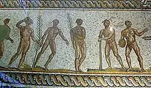 Este artículo trata del deporte en la antigua Grecia de 1600 a. C. al 600 d. C., aproximadamente. El término deporte se utiliza en este artículo en el sentido de uso moderno, aunque esta terminología no se utilizaba en épocas anteriores. De hecho, los griegos no tenían un término [1] para la palabra deporte.