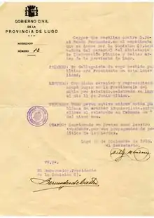 - Pliegos de cargo: En el caso de que los miembros de la comisión obtuvieran suficientes pruebas contra el acusado, se procedía a formular un pliego de cargos, donde se recogían todas las acusaciones recibidas, y se les pedía información sobre la pertenencia o no a la masonería, si se habían hecho responsable de altos cargos durante la Segunda República.