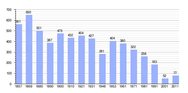 | Gráfica de población de Deringaj 1857-2011 |