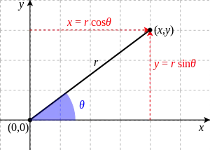 Por ejemplo, sea una partícula moviéndose en una trayectoria circular. Su posición viene dada por el vector desplazamiento , relacionado con el ángulo, θ, y la distancia radial, r, como se define en la figura: