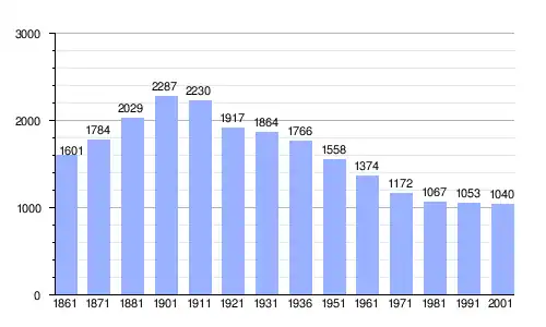 | Gráfica de evolución demográfica de Desana entre 1861 y 2001 |