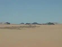 El desierto occidental es un área del Sahara en Egipto que se encuentra al oeste del río Nilo, hasta la frontera con Libia, y al sur desde el mar Mediterráneo hasta la frontera con Sudán. Se nombra en contraste con el Desierto Oriental que se extiende hacia el este desde el Nilo hasta el Mar Rojo. El desierto occidental es principalmente un desierto rocoso, aunque una zona de desierto arenoso, conocida como el Gran Mar de Arena, se encuentra al oeste frente a la frontera con Libia. El desierto cubre un área de 680,650 km, que es dos tercios de la superficie terrestre del país.[1] Su elevación más alta es 1,000 m (3.300 ft) en la meseta de Gilf Kebir en el extremo suroeste del país, en la frontera entre Egipto, Sudán y Libia. El desierto occidental es árido y deshabitado salvo por una cadena de oasis que se extienden en un arco desde Siwa, en el noroeste, hasta Jariyá en el sur. Ha sido escenario de conflictos en los tiempos modernos, particularmente durante la Segunda Guerra Mundial.