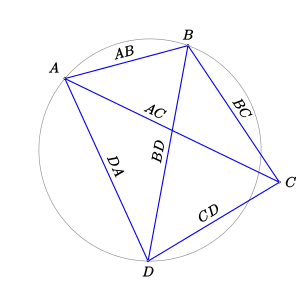 - Silvester, John R. (2001), «Proposition 9.10 (Ptolemy's theorem)», Geometry: Ancient and Modern, Oxford University Press, p. 229, ISBN 9780198508250..