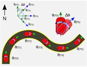 Dado que cualquier marco de referencia en el espacio puede describirse mediante una matriz de rotación, el desplazamiento entre ellos también puede describirse mediante una matriz de rotación. Siendo y dos matrices, la matriz de desplazamiento angular entre ellas se puede obtener como . Cuando este producto se realiza con una diferencia muy pequeña entre ambos sistemas de referencia, se obtiene una matriz cercana a la identidad.