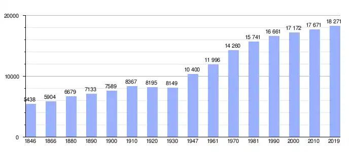 Todos los datos históricos relativos al actual municipio, el siguiente gráfico refleja su evolución demográfica, incluyendo municipios después de efectuada la fusión el 1 de enero de 1977.
