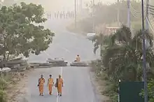 El templo también comenzó a organizar grandes donaciones de limosnas en todo el país.[77] Los eventos de donación de limosnas se llevaron a cabo para ayudar a unir a monjes y laicos a revivir la costumbre de dar limosna y como una dedicación de mérito a las víctimas de la insurgencia en las provincias del sur.[73][83][84] Las ganancias de los eventos de donación de limosnas se usaron para apoyar a los templos y maestros en el sur con ayuda y suministros.[85][84]