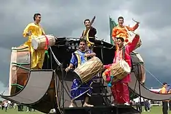 Músicos tocando el dhol.