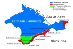 Caffa, la antigua colonia griega de Theodosia, correspondiente a la actual ciudad de Feodosia en Crimea, fue un antiguo obispado de la provincia romana de Zechia y del reino vasallo romano del Bósforo. El origen de esta diócesis griega es incierto y no parece que esté en ninguna Notitia Episcopatuum. Según Michel Le Quien,[1] Caffa habría sido la sede de la ecclesia Gotthiae de los godos de Crimea (que invadieron Crimea en 255), entre cuyos obispos se menciona a Juan de Gotia. En 376 la península fue invadida por los hunos que pusieron fin al Reino del Bósforo. Hacia el año 400 el Imperio bizantino recuperó el control de la parte sur de Crimea y la mantuvo hasta el 717, cuando los jázaros se apoderaron de ella, aunque los bizantinos la recuperaron y perdieron a manos de distintos pueblos invasores en varias oportunidades hasta que en 1237 Crimea fue devastada por el Imperio mongol y luego pasó a ser parte del kanato de la Horda de Oro.