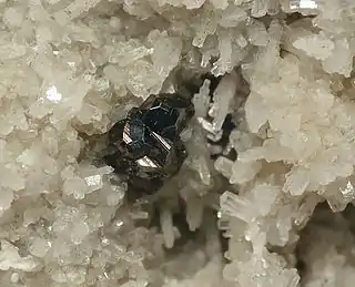 ![]() Diaforita y calcita. Mina Neue Hoffnung Gottes, Bräunsdorf, Freiberg, Erzgebirge,Sajonia (Alemania). Campo de imagen 3 cm. | ||
