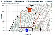Por su parte, cada refrigerante tiene su propio diagrama Ph con particularidades que lo hacen más o menos adecuado a cada aplicación frigorífica y propiedades exclusivas como relación temperatura/presión tanto de saturación como en mezcla, efecto refrigerante, temperatura de descarga del compresor en función de la entropía, entre otros.