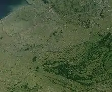 Imagen de satélite de Bélgica. El Diamante se puede apreciar en la zona septentrional.