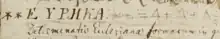Entrada 18, fechada el 10 de julio de 1796, registrada como "ΕΥΡΗΚΑ! num = Δ + Δ + Δ" e indica el descubrimiento de una demostración de que cualquier número natural es suma de tres números triangulares, una caso especial del teorema del número poligonal de Fermat.