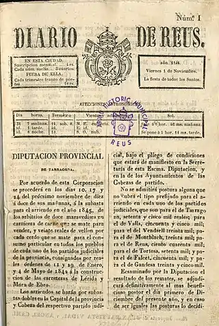 El Diario de Reus fue un periódico español publicado en Reus entre 1859 y 1938.[1] Consagrado en su momento como uno de los periódicos más antiguos de Cataluña, desapareció tras el inicio de la Guerra civil.