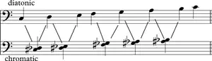Diatónico (griego: διατονική) y cromático (χροματικί) son términos de la teoría musical a menudo utilizados para caracterizar la escala musical, y es también aplicado a instrumentos musicales, intervalos, acordes, notas, estilos musicales, y clases de armonía. Todos estos conceptos fueron introducidos desde la antigua Grecia, y son a menudo utilizados como par, especialmente aplicado para contrastar características de la música de práctica común.